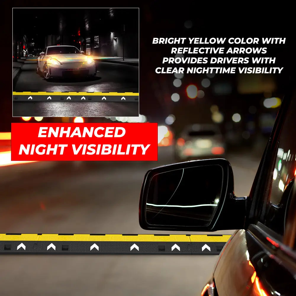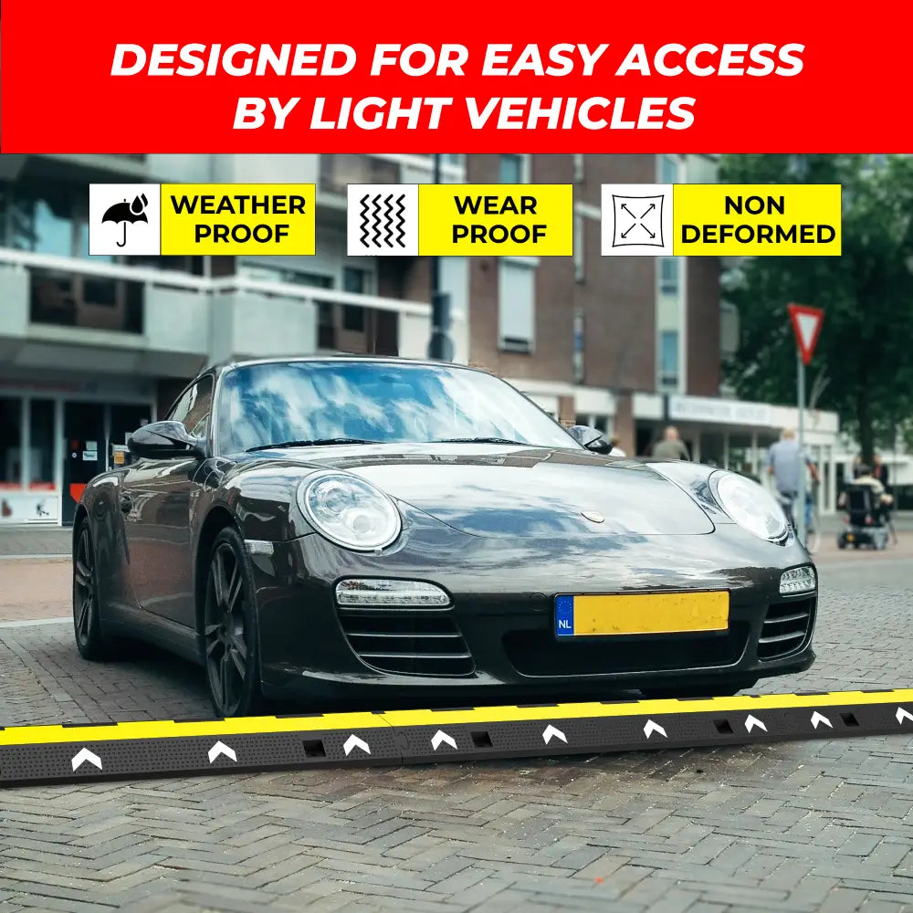 Single Channel Cable Protector is a reliable and durable solution for safeguarding cables and wires in high-traffic areas. Crafted from heavy-duty PVC compound with an anti-slip surface, it ensures safety while preventing tripping hazards. Its modular interlocking design allows for easy expansion, and the bright yellow lid with reflectors enhances visibility. Perfect for events, offices, warehouses, and parking areas.